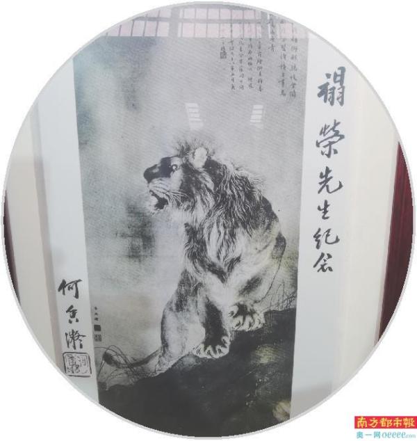 何香凝题赠禤荣的《雄狮西顾图》复制图局部。