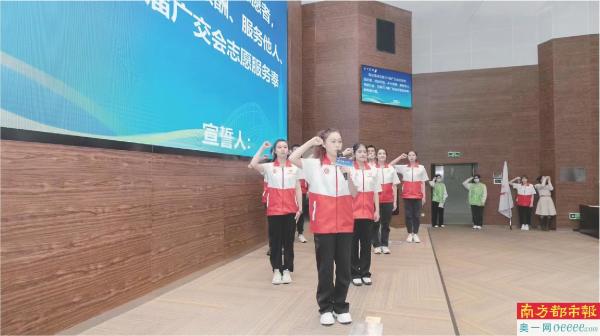 吴洁芝带领第133届广交会志愿者代表进行上岗宣誓。受访者供图