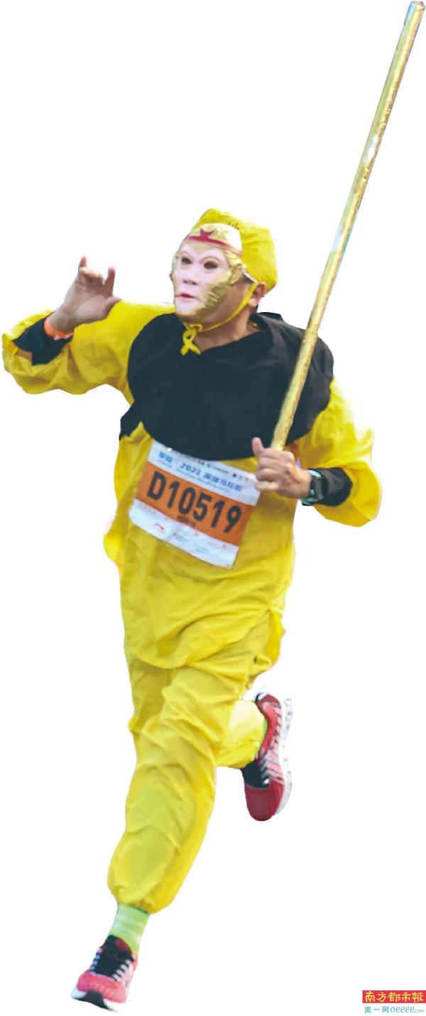 跑友装扮成孙悟空,享受运动的乐趣。新华社发
