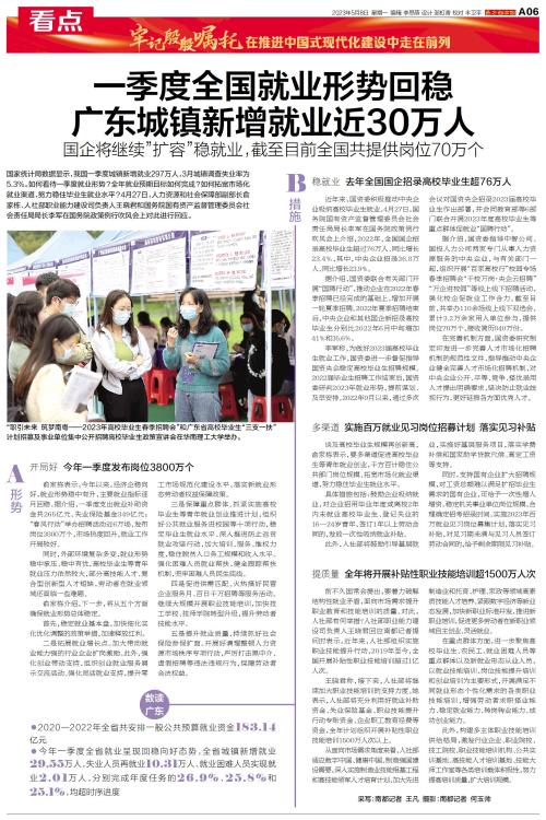 一季度全国就业形势回稳 广东城镇新增就业近30万人