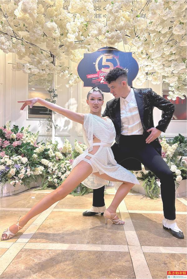 萨尔萨舞大师鲁本·李(右)与舞伴参加舞蹈大赛。