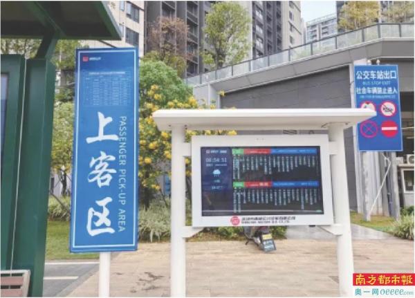 在候车指引方面,为了更匹配老年乘客的需求,适老化公交站点升级安装了智能化电子导乘屏,能显示场站内公交线路的实时发班信息,还有语音广播实时播报发班情况,为乘客提供更加准确的公交出行信息服务。同时,站点客流指引标识也更为显眼突出——上客区地面设置排队标线及文字,提示乘客有序排队上车;下客区设置清晰的出站指引标识,引导乘客安全出站。