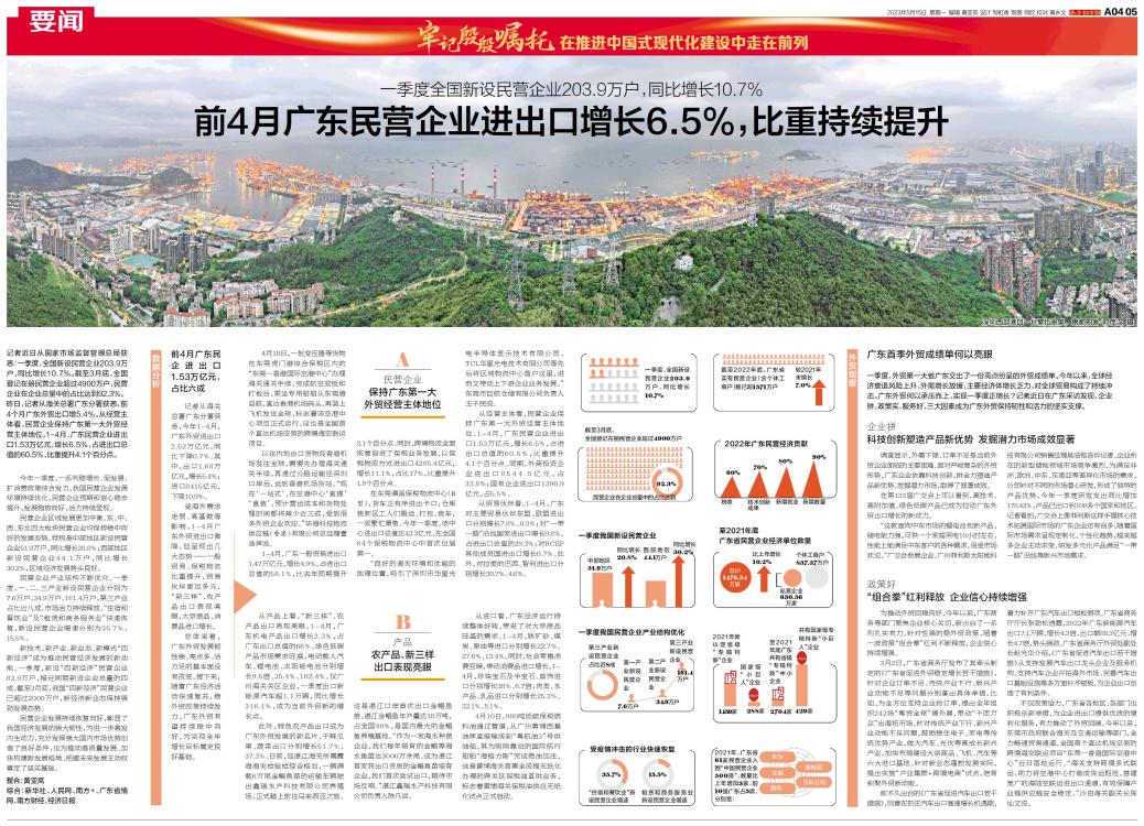 前4月广东民营企业进出口增长6.5%,比重持续提升