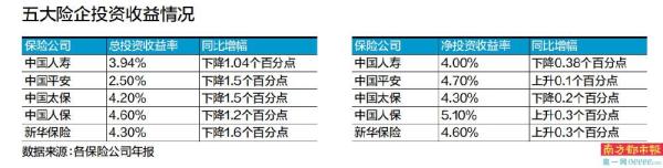 其中,2022年,中国人寿总投资收益率为3.94%,同比下降1.04个百分点;中国平安总投资收益率为2.5%,同比下降1.5个百分点;中国太保总投资收益率为4.2%,同比下降1.5个百分点;中国人保总投资收益率为4.6%,同比下降1.2个百分点;新华保险总投资收益率为4.3%,同比下降1.6个百分点。