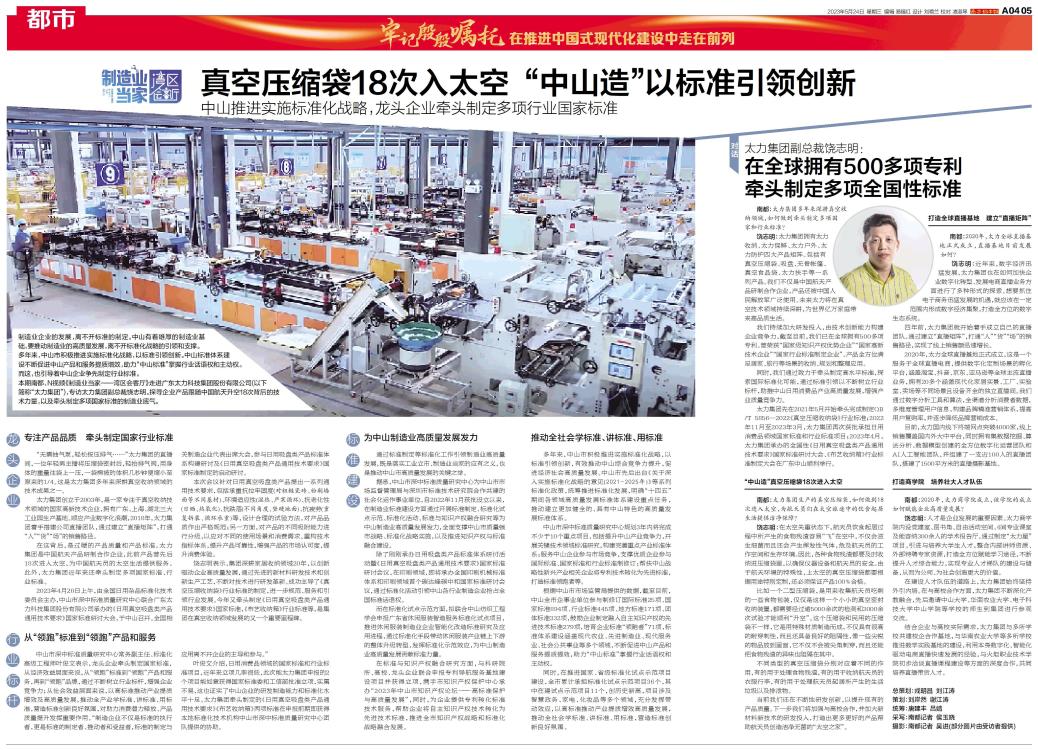 真空压缩袋18次入太空 “中山造”以标准引领创新