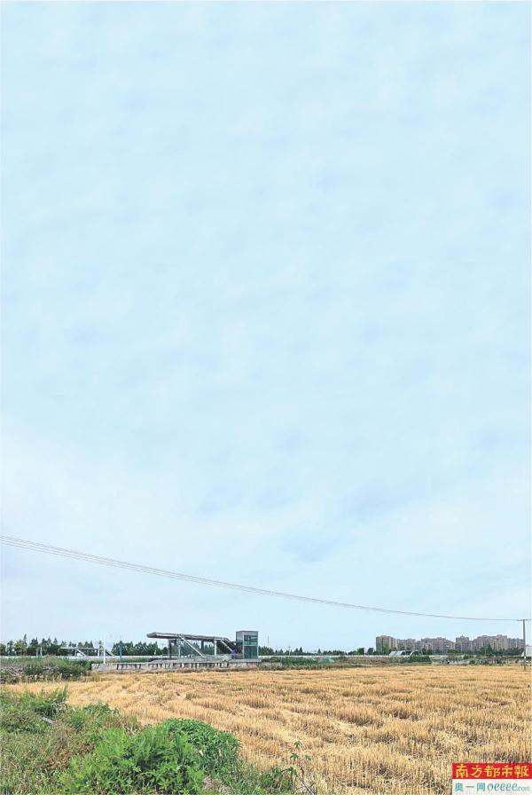 建在农田里的宁波地铁3号线高塘桥站C出口。 新华社发