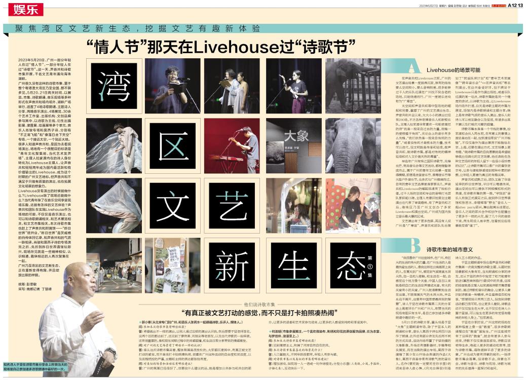 2023年5月20日,广州一部分年轻人在过“情人节”,一部分年轻人在过“诗歌节”。这一天,声音共和诗歌市集开展,千名文艺青年涌向海珠湖畔。