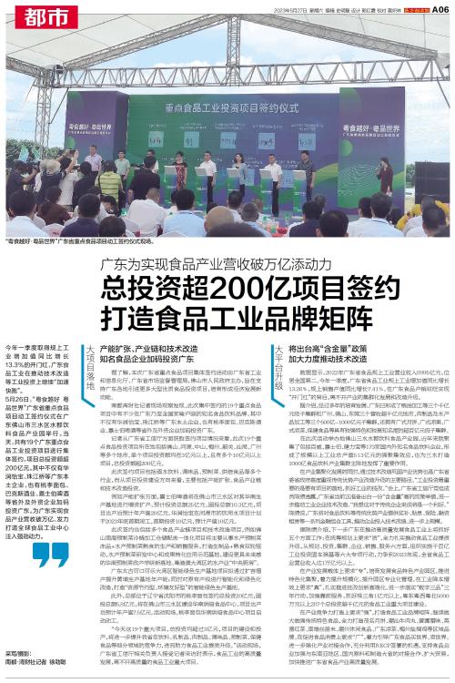 5月26日,“粤食越好 粤品世界”广东省重点食品项目动工签约仪式在广东佛山市三水区水都饮料食品产业园举行。