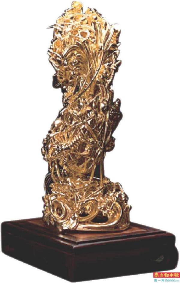 多层镂空和髹漆贴金技艺,营造富贵华美、流光溢彩的效果。