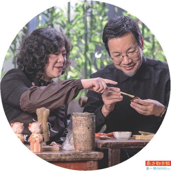 大吴泥塑博物馆馆长潘幼芬与湾区文化探寻者曹雪一起制作大吴泥塑。