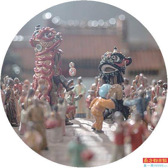 同庆石湾公仔博物馆内,微缩的石湾陶塑作品,再现“行通济”的习俗。