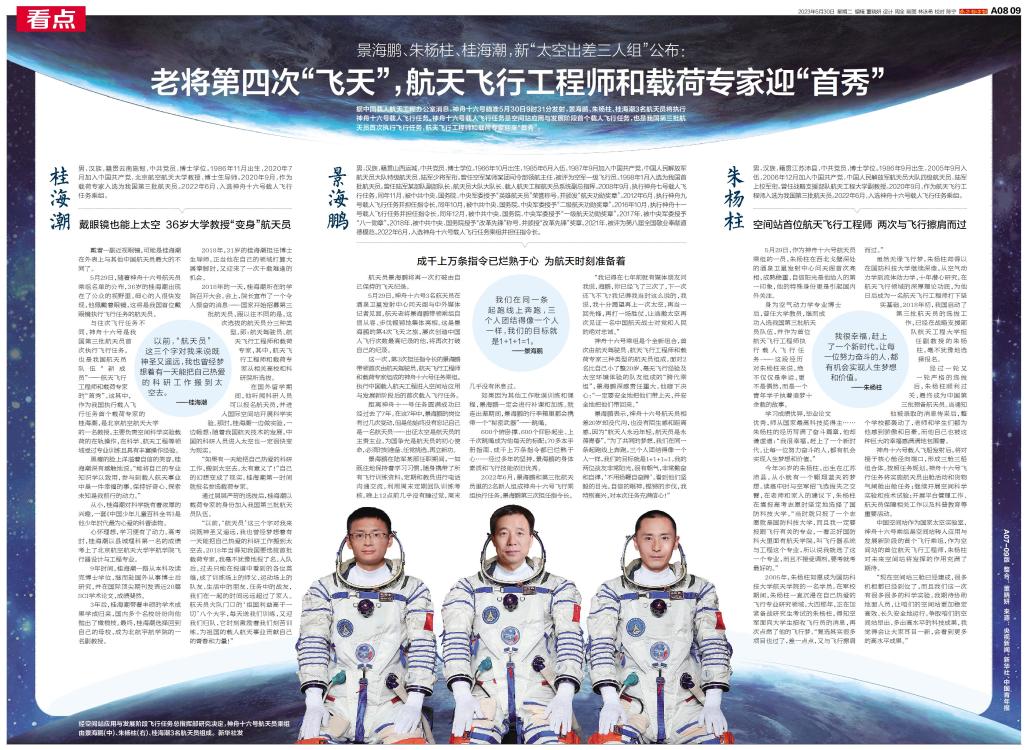 老将第四次“飞天”,航天飞行工程师和载荷专家迎“首秀”