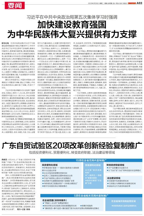 中共中央政治局5月29日下午就建设教育强国进行第五次集体学习。