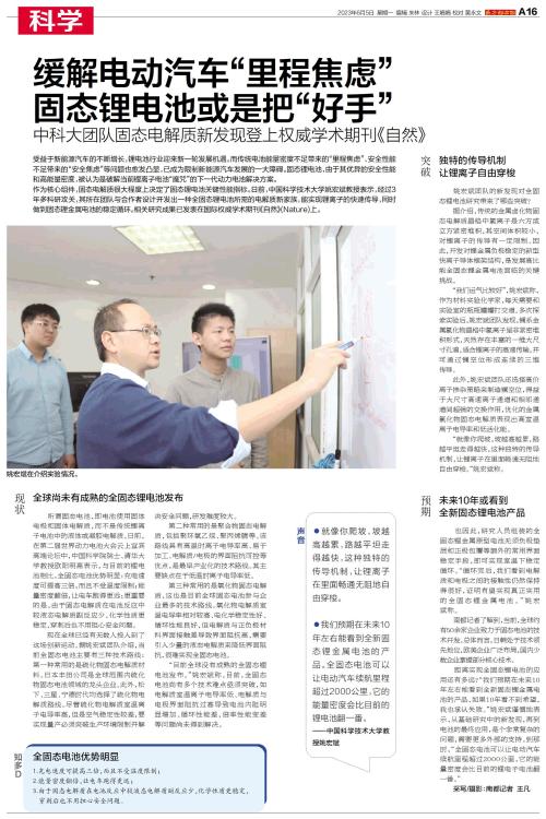 缓解电动汽车“里程焦虑” 固态锂电池或是把“好手”