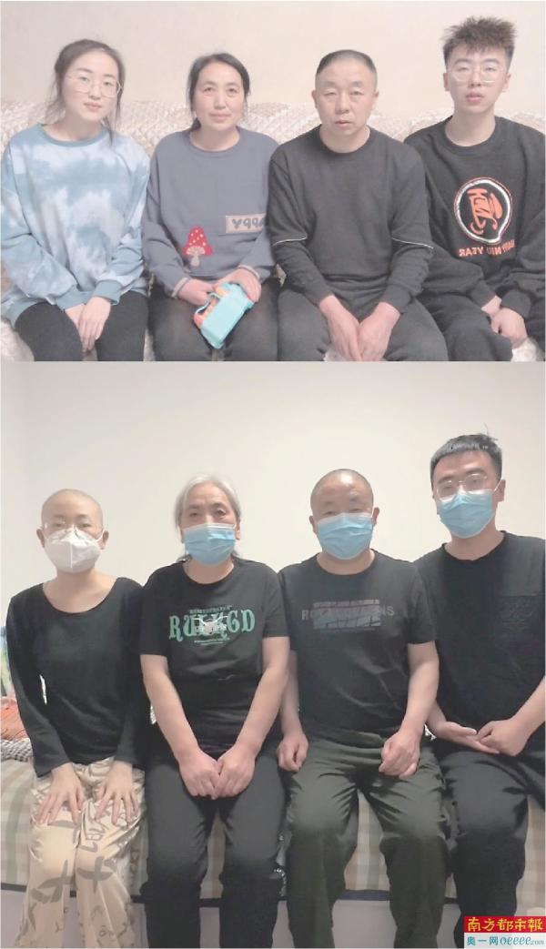 一年前,一张照片中四人面容恬然,享受着春节期间的阖家欢乐;一年后,还是一张照片,还是那一家人,有人青丝变为白发,稚嫩化成稳重,还有人剃光了头。