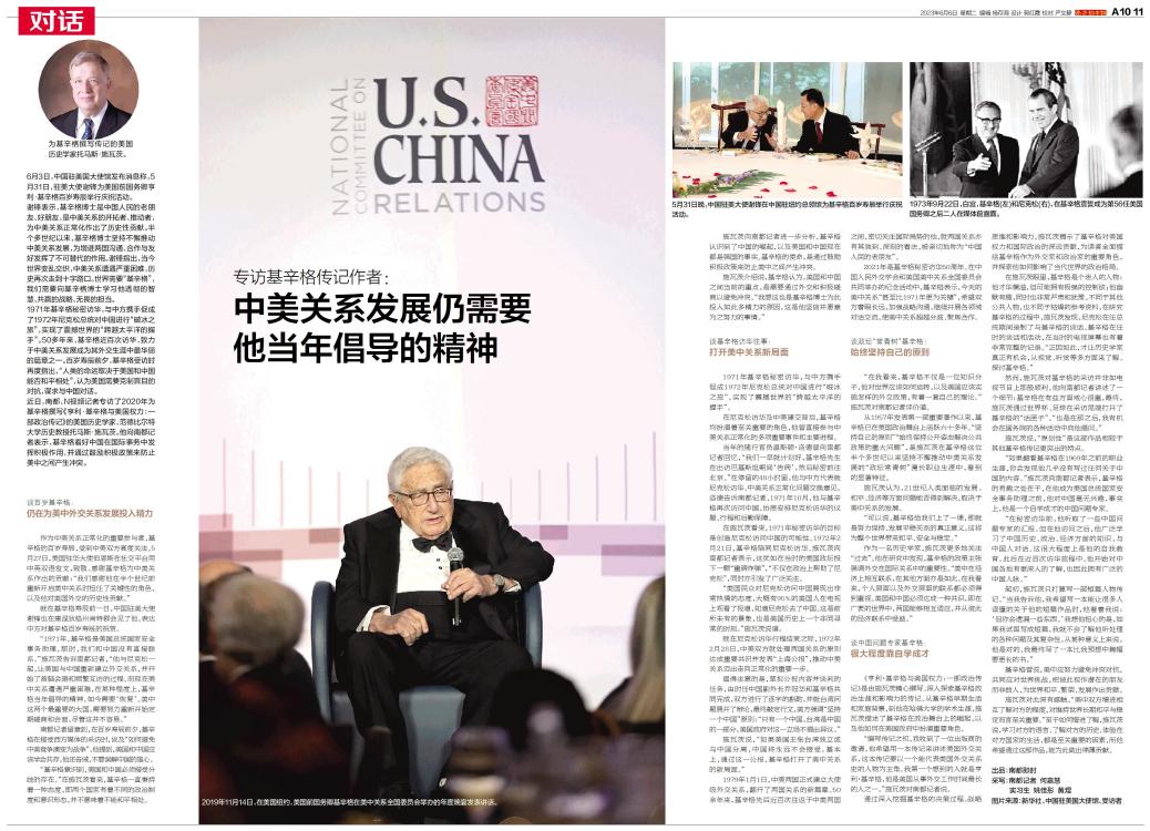 6月3日,中国驻美国大使馆发布消息称,5月31日,驻美大使谢锋为美国前国务卿亨利·基辛格百岁寿辰举行庆祝活动。