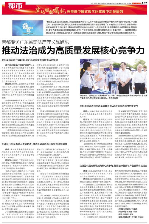 近日,广东省司法厅、南方都市报联合推出“奋楫2023——高质量发展中的法治力量”系列报道,紧扣当下“高质量法治服务高质量发展”话题,展现广东全省司法行政机关的担当作为。