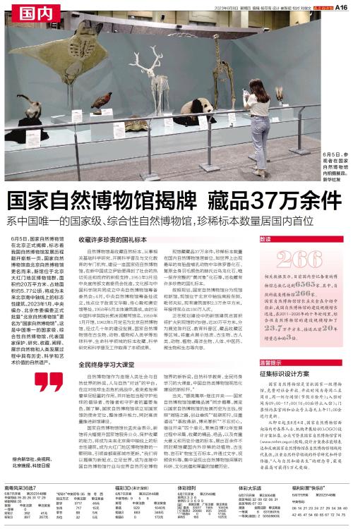 6月5日,国家自然博物馆在北京正式揭牌,标志着我国自然博物馆发展历程翻开崭新一页。
