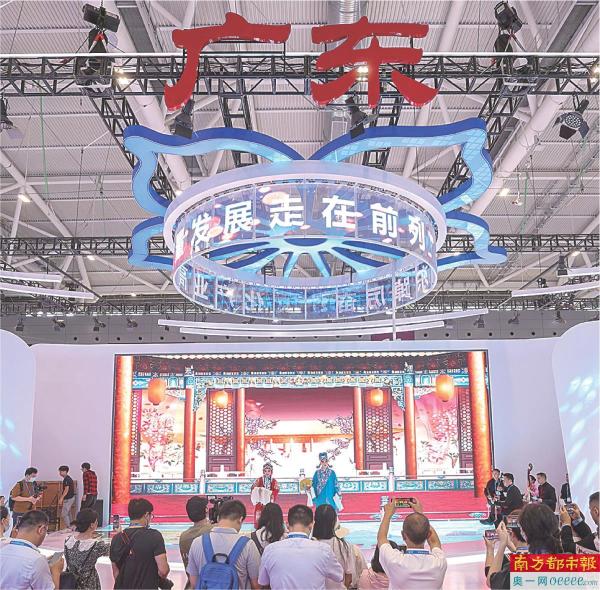 6月7日,在本届文博会广东展区,国家级非物质文化遗产广东汉剧表演吸引了大批观众驻足。 南方日报记者 朱洪波 姚志豪 鲁力 见习记者 苏韵桦 摄