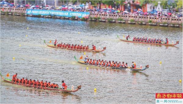 随着裁判员一声令下,各支龙舟队伍随即展开激烈较量。