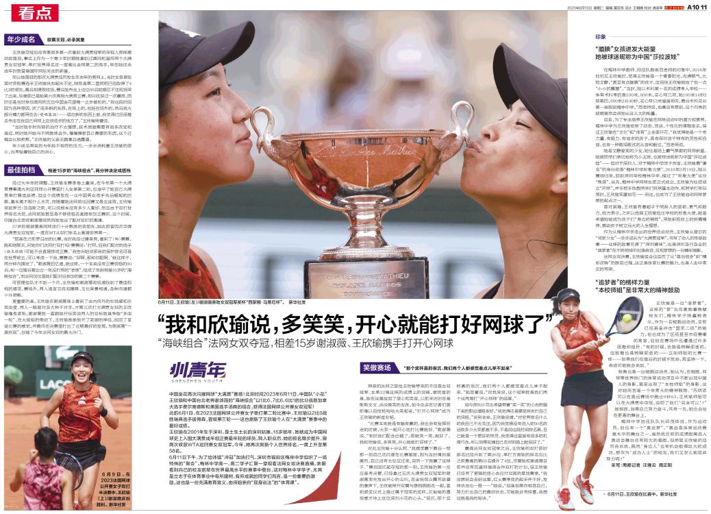 作为从梅林中学走出的世界级运动员,王欣瑜从昔日的“邻家少女”一步步成长为“大满贯冠军”,书写了动人的传奇故事——这样的故事充满了“深圳意味”,也是深圳各行各业的“造梦者”在不同领域中创造奇迹、兑现梦想的一份精彩缩影。