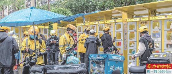广州,外卖小哥冒雨送餐。今年3月,广东下发通知要求平台推出小份菜等防范浪费。 南都拍客 张业斌 摄
