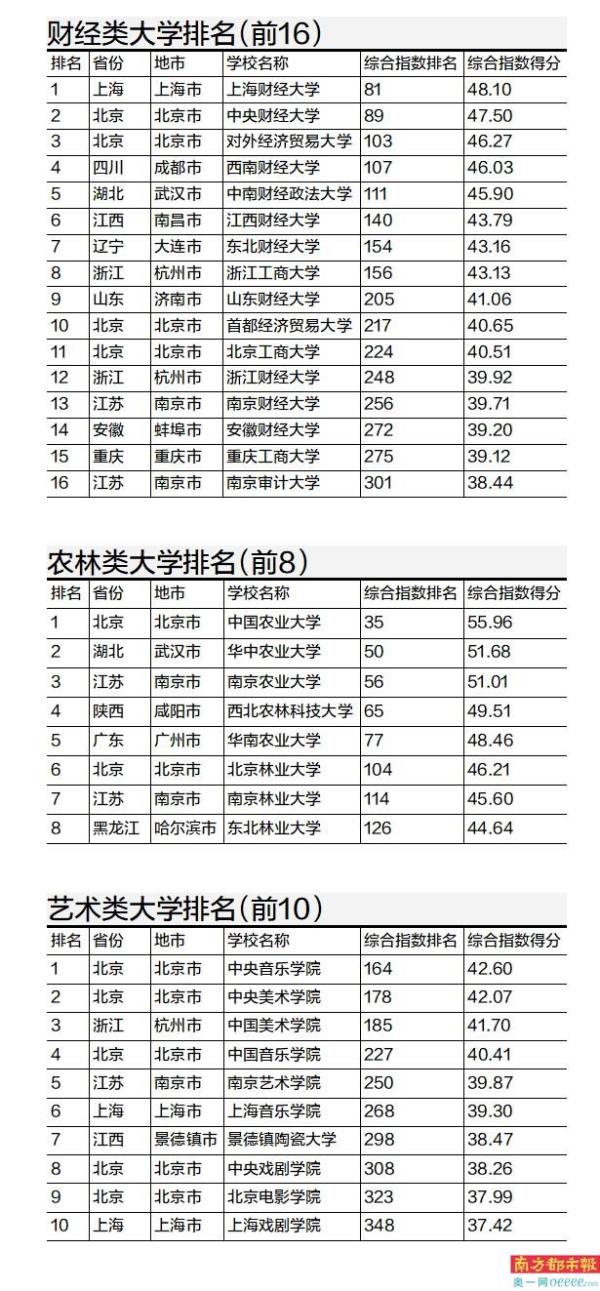 中央音乐学院、中央美术学院、中国美术学院位居前三。