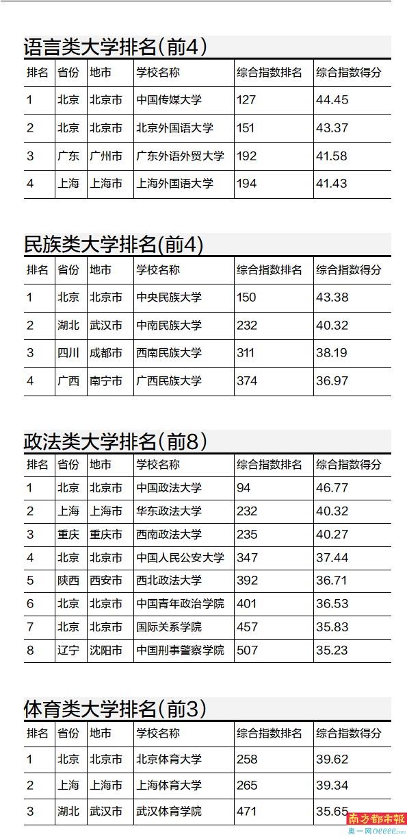 中央民族大学、中南民族大学、西南民族大学位居前三。