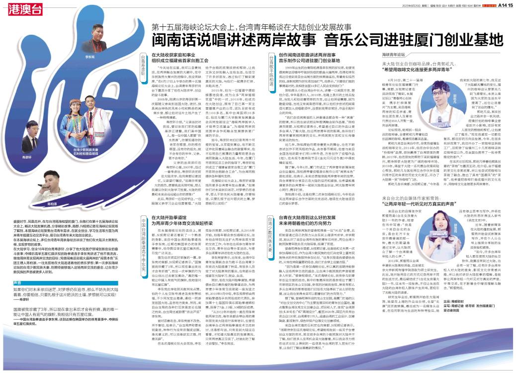 闽南话说唱讲述两岸故事 音乐公司进驻厦门创业基地