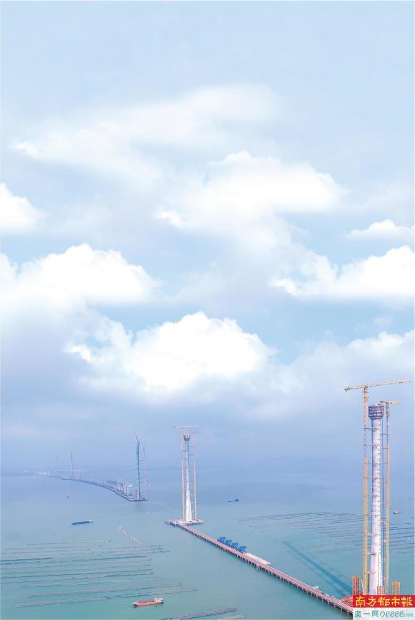 黄茅海跨海通道五座主塔全部封顶。 南方日报记者 石磊 通讯员 韩冬冬 曹坤 摄