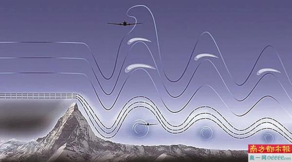 动力乱流 第二种是“动力乱流”,因复杂地形引起的空气变化以及风切变是这一乱流的始作俑者,这类乱流经常袭击在山地高原上空对流层飞行的飞机。