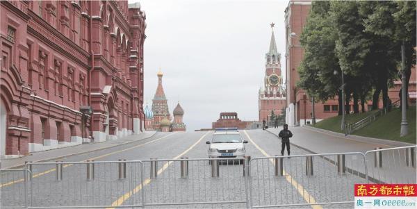 6月24日,执勤人员在俄罗斯莫斯科红场附近警戒。 新华社发