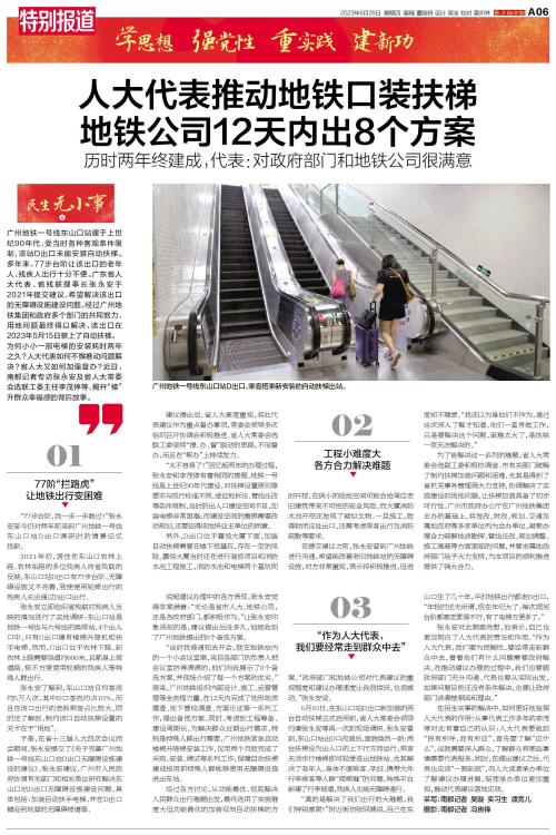 人大代表推动地铁口装扶梯 地铁公司12天内出8个方案