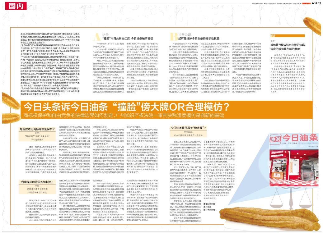 今日头条诉今日油条“撞脸”傍大牌OR合理模仿?