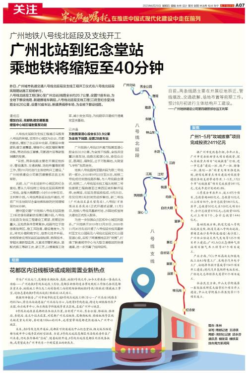 昨日,广州城市轨道交通八号线北延段及支线工程开工仪式在八号线北延段凤翔路站施工现场举行。