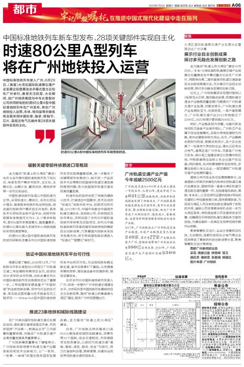中国标准地铁列车驶入广州。6月29日,(首届)大湾区国际轨道展交通产业发展论坛暨展览会开幕式暨主论坛在广州举行。