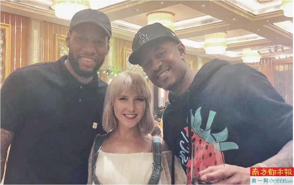 Jane和广东队2019年夺冠时队里的外援威姆斯(左)、马尚合影。