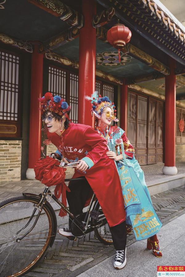 Jane与先生的中式婚纱照之一,他们在广州结缘成家。