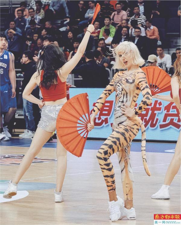 在“华南虎”广东宏远男篮的主场,Jane扮演啦啦队里的“虎女郎”,有自己的独角戏份,令人印象深刻。