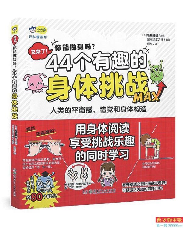 你的大拇指可以碰到手腕吗?你可以在后脑勺和脚后跟都紧贴着墙壁的时候鞠躬吗?双臂展开的长度竟然等于身高?这本有趣的科普书告诉孩子们很多关于平衡、错觉和身体构造的知识。全书设计了约80个关于身体各部位的有趣挑战。幽默插画,加上简短的分析,随便翻开一页就能开始挑战。该书适合亲子互动,叫上家人或同学一起挑战,可以了解更多身体知识。