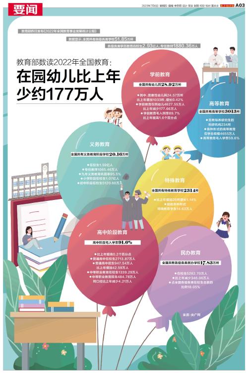 教育部昨日发布《2022年全国教育事业发展统计公报》