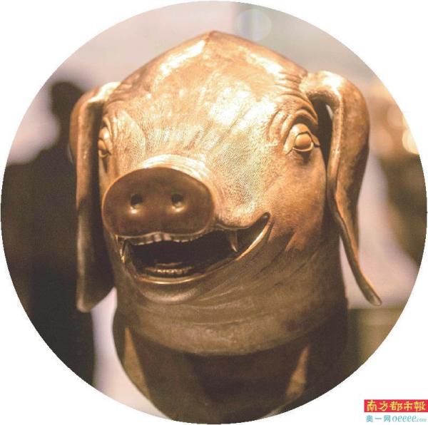 此次展出的四大兽首是由意大利传教士郎世宁等设计,将西方艺术特色与中国传统审美趣味相融合,展现出极高的工艺水准。其中,牛首遒劲有力;虎首“似虎似狮”;猴首面容似“桃”,惟妙惟肖;猪首形似野猪,透出中国传统审美趣味。