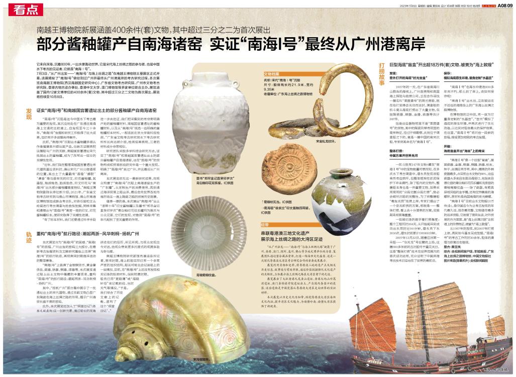 7月3日,“从广州出发——‘南海I号’与海上丝绸之路”在南越王博物院王墓展区正式开幕。