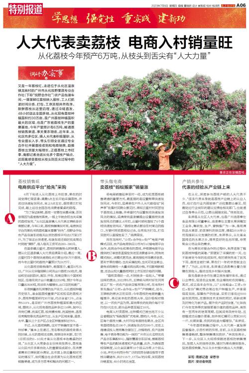又是一年荔枝红。走进位于从化区温泉镇龙岗村的广州市从化悦野果蔬专业合作社(下称“悦野合作社”)农产品包装车间,一筐筐鲜红荔枝映入眼帘,工人们抓紧时间分拣、打包,工序流程井然有序。新鲜荔枝从这里启程