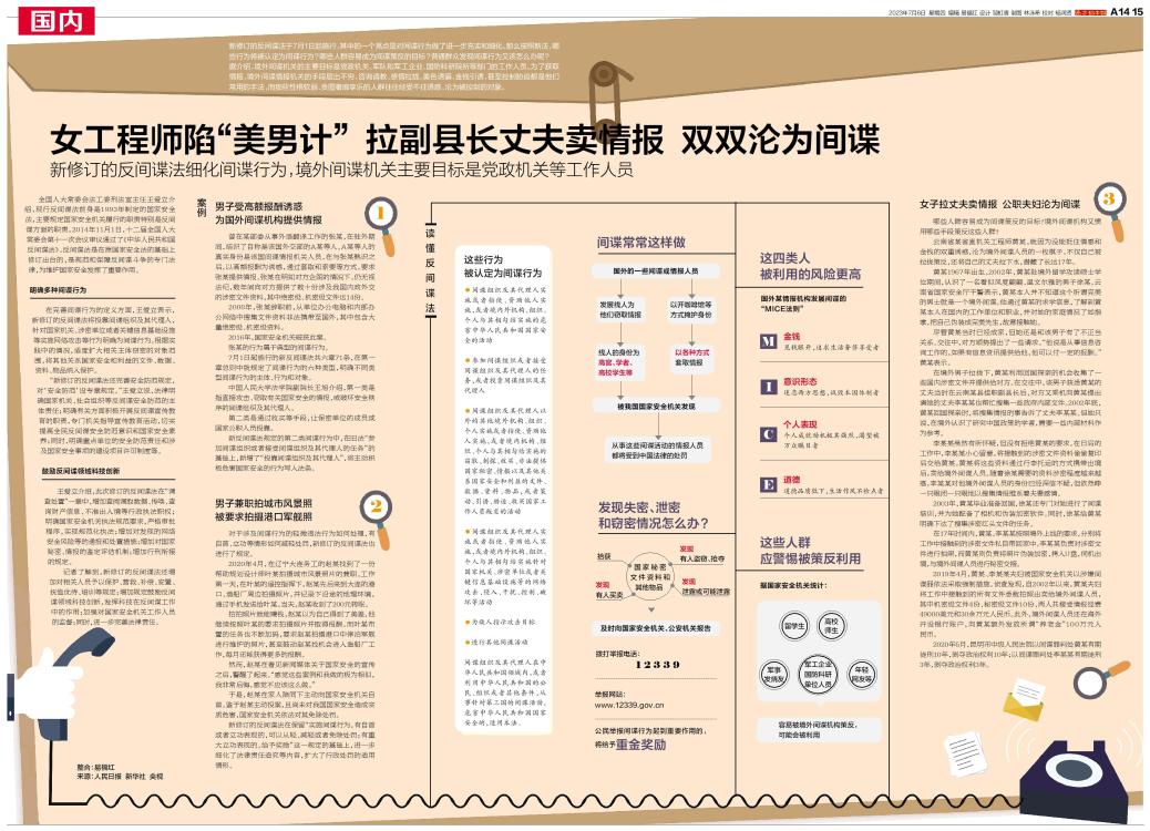 新修订的反间谍法于7月1日起施行,其中的一个亮点是对间谍行为做了进一步充实和细化。