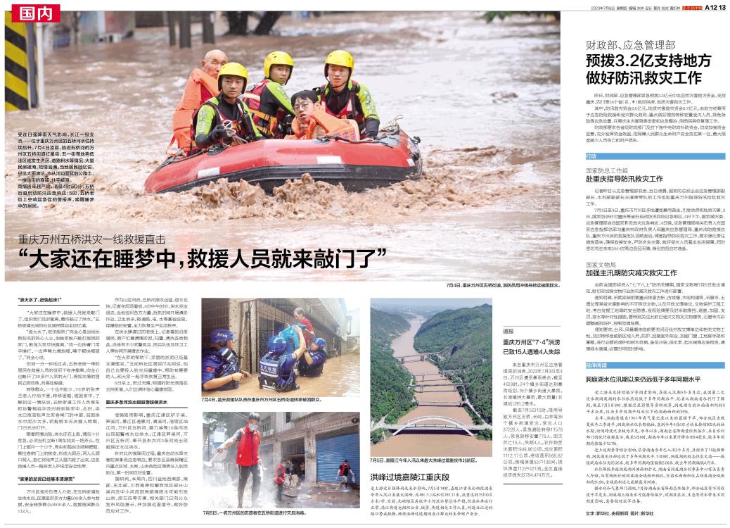 昨日,财政部、应急管理部紧急预拨3.2亿元中央自然灾害救灾资金,支持重庆、四川等16个省(区、市)做好洪涝、地质灾害救灾工作。
