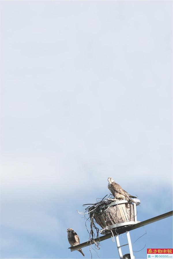 电线杆顶部设有人工鸟巢,以保护鸟类。 受访者供图