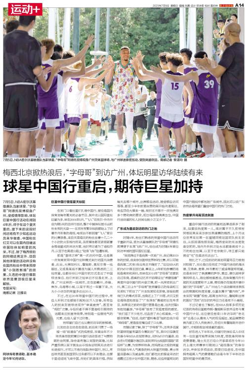 在家门口看巨星们扎堆中国行,曾经是国内体育迷每年夏天的必备节目,其中尤以国际篮坛巨星为多。早在2004年5月,“飞人”迈克尔·乔丹开启为期5天的亚洲行活动,整个中国体坛显示出前所未有的亢奋——北京所有繁华地段都贴上了印着乔丹形象的海报,电视台不断回播“飞人”昔日的比赛录像,来自天南海北的粉丝坐着十几二十个小时的火车相约而来,各家媒体都在紧密部署全程追星式的采访方案。当时有记者为了追拍乔丹,以至于在高速公路上“贴身飞车”险遭车祸。