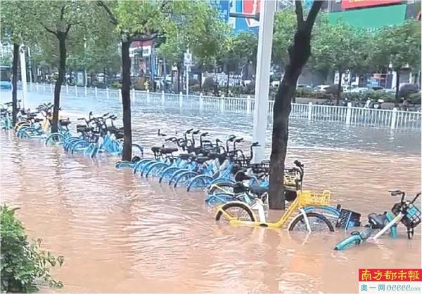 “中午12点过后,我印象特别深刻,当时我正在岗亭吃饭,看到(路上的井盖)咚咚冒水,眼看着水涨起来,涨得好快!”武先生说,当天路边的共享单车都被路面的积水冲得七零八落,雨水退去,才有人将共享单车扶正。