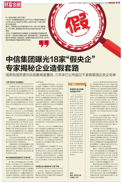 7月4日,中信集团官网发布《关于不法分子冒用中信集团子公司名义设立公司的严正声明》,并对外公告了18家“假中信”企业的名单。